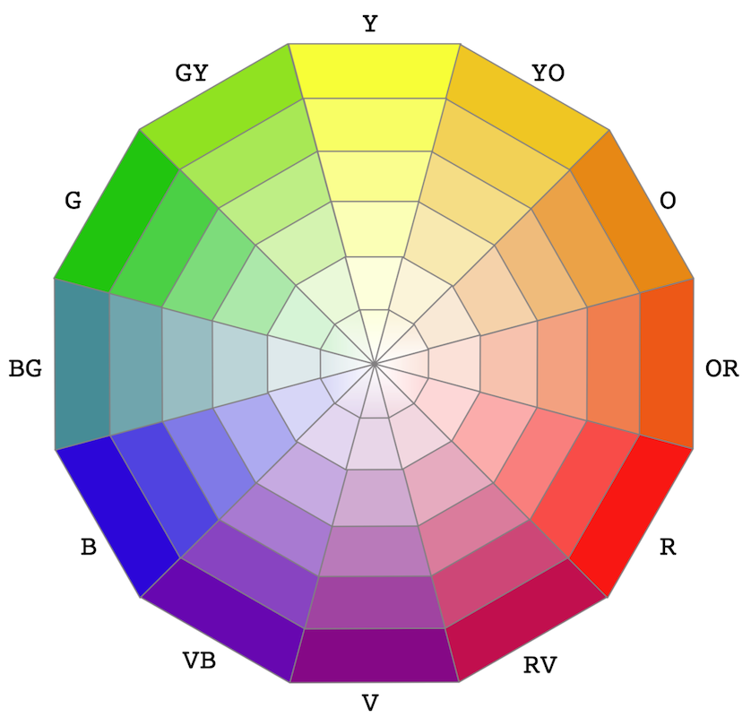 Italiano: Emisfero chiaro dei colori basilari secondo J. Itten |